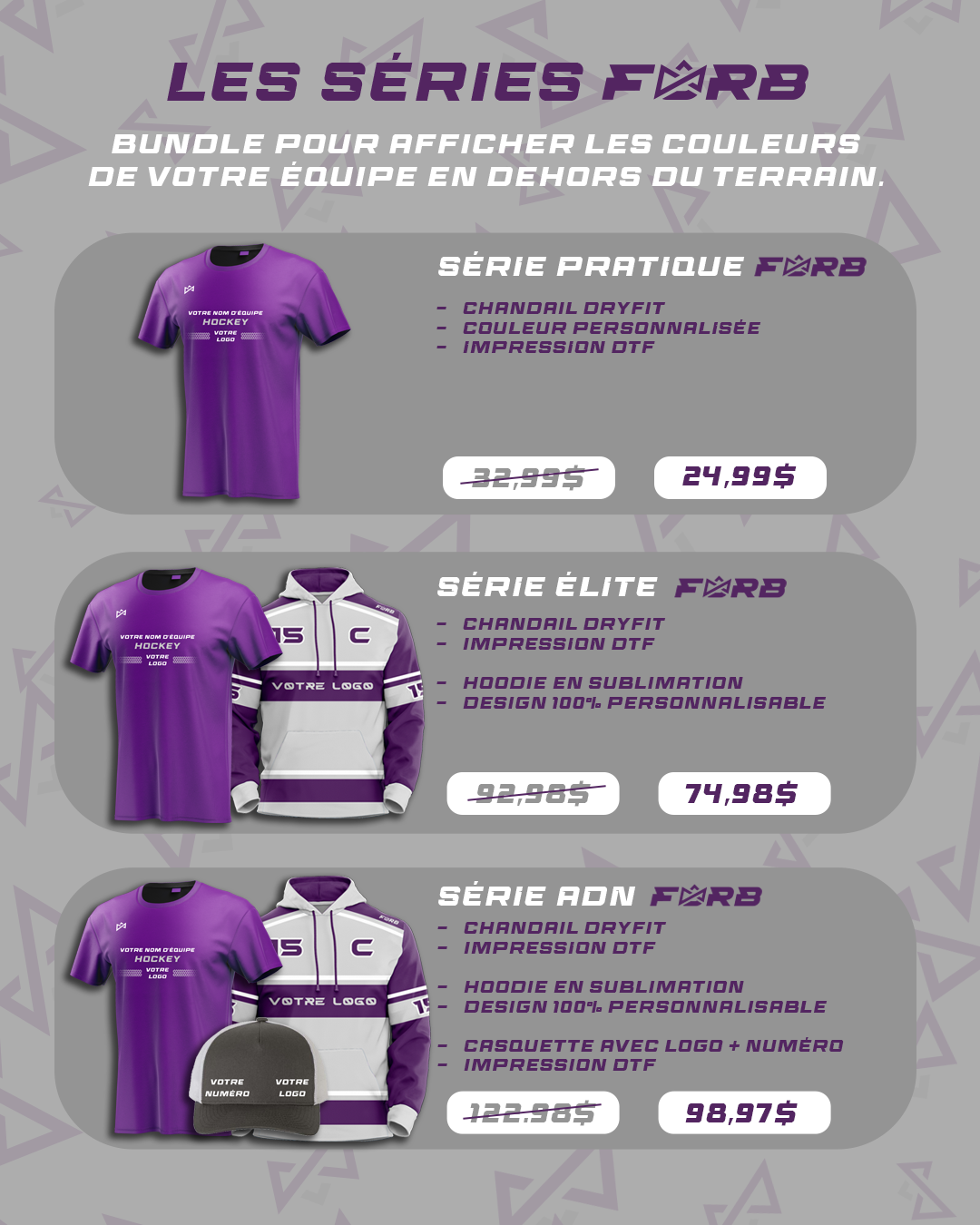 Chandail dry-fit + hoodie sublimé + casquette personnalisée avec logo et numéro
